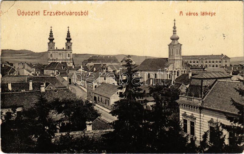 1907 Erzsébetváros, Dumbraveni; látkép, templomok. 1828. (W.L. ?) / general view, churches (EB)