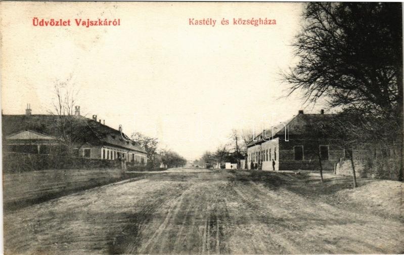 1907 Vajszka, Vajska; Grófi kastély és községháza, utca / castle and town hall, street