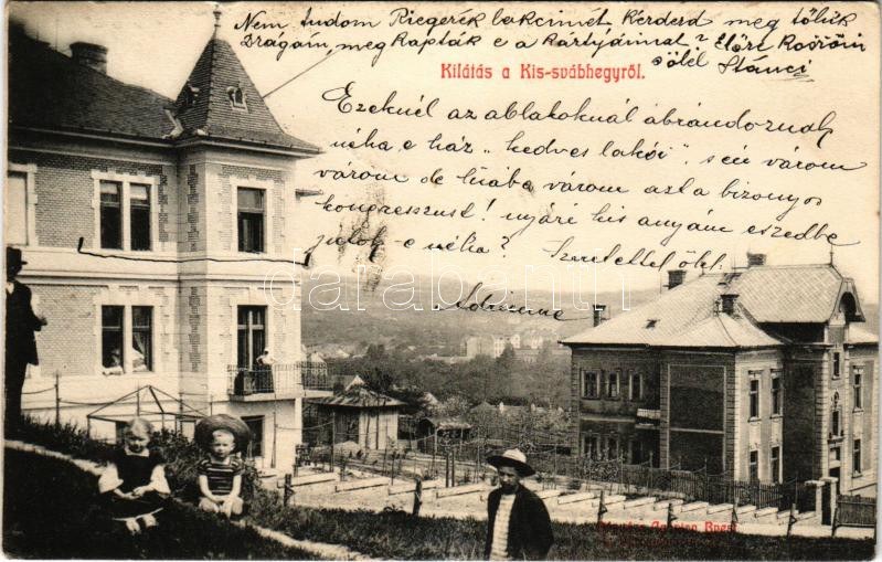 1908 Budapest XII. Svábhegy, kilátás a Kis-Svábhegyről, villák, Bányás Ágoston. Kohn és Grünhut kiadása (ragasztónyom ...