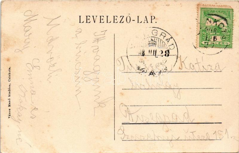 1908 Budapest XVI. Cinkota, HÉV (Helyiérdekű Vasút) vasútállomás, vonat, Evangélikus templom. Vános Manó kiadása (fl...