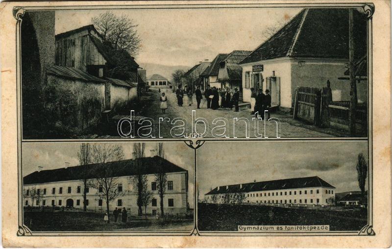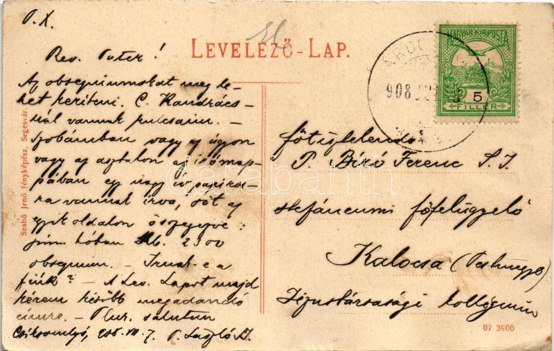 1908 Csíksomlyó, Sumuleu Ciuc; Gimnázium és tanítóképezde, Fő út, Kazátsai Béla üzlete. Szabó Jenő fényképész kiadása ...