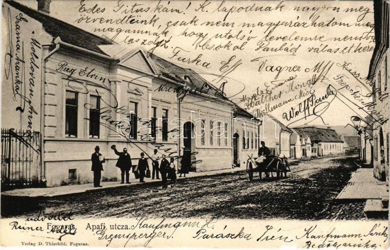 1908 Fogaras, Fagaras; Apafi utca. D. Thierfeld kiadása / street (gyűrődés / crease)