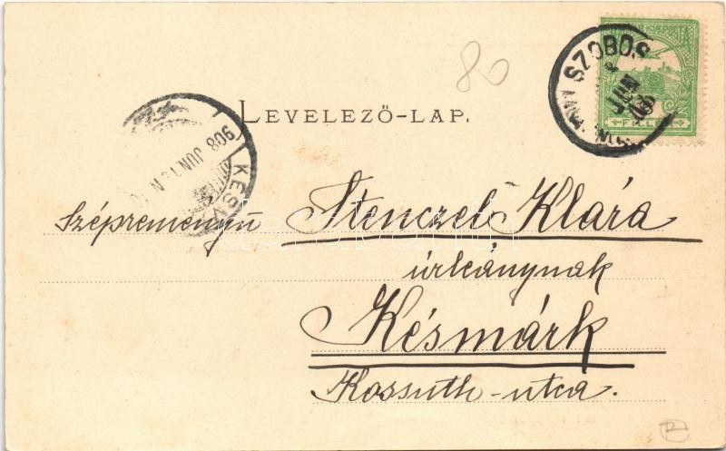 1908 Hajdúszoboszló, Református templom, Vasút utca, Kerekes Kálmán üzlete. Farkas György kiadása