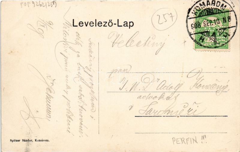1908 Komárom, Komárno; Lenfonógyár. Spitzer Sándor kiadása / flax spinning mill, factory + perfin (EK)