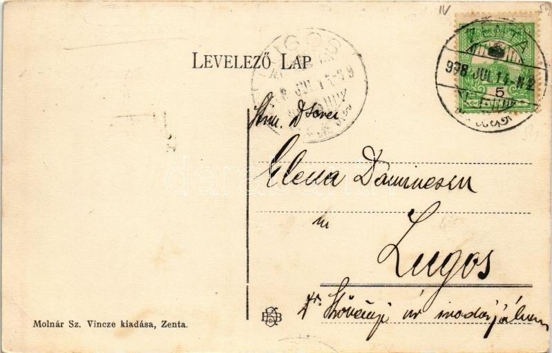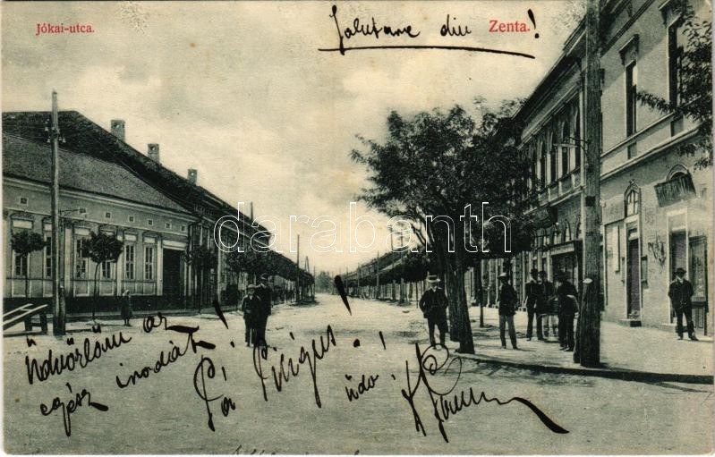 1908 Zenta, Senta; Jókai utca, üzletek. Molnár Sz. Vince kiadása / street, shops