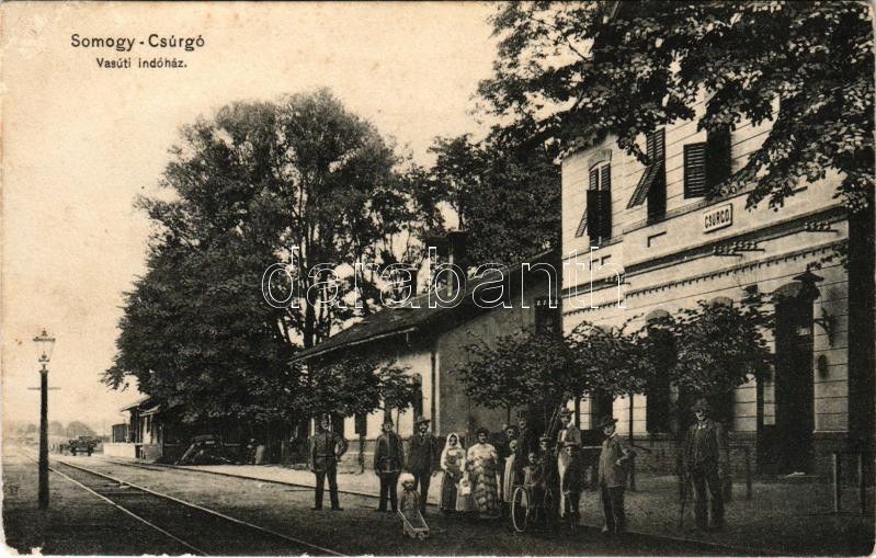 1909 Csurgó, Somogycsurgó; Vasúti indóház, vasútállomás. Szűcs Béla kiadása (EM)