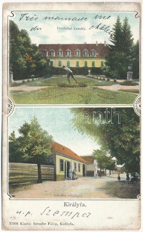 1909 Királyfa, Králová pri Senci; Uradalmi kastély, Schaffer vendéglő. Schaffer Fülöp kiadása / castle, restaurant...