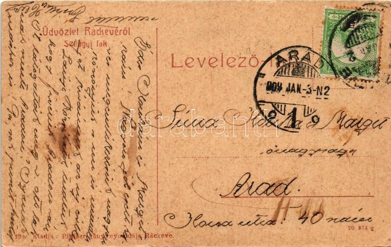 1909 Ráckeve, Szilágyi lak, kastély, gólya a kertben. Pilliser könyvnyomdája kiadása 299. (W.L. ?) (EK)