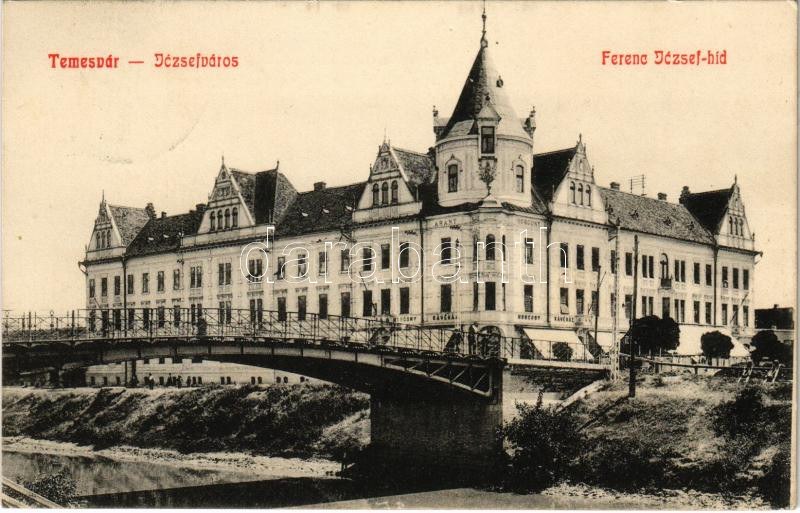 1909 Temesvár, Timisoara; Józsefváros, Ferenc József híd, Arany Horgony Kávéház / Iosefin, bridge, cafe