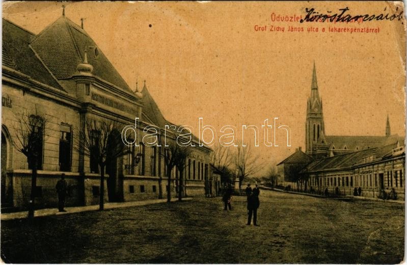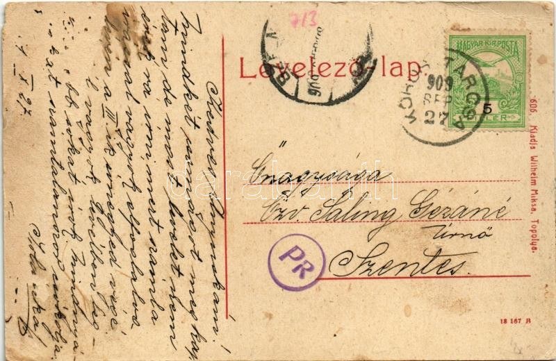 1909 Topolya, Bácstopolya, Backa Topola; Gróf Zichy János utca, takarékpénztár. Wilheim Miksa kiadása, W.L. (?) ...