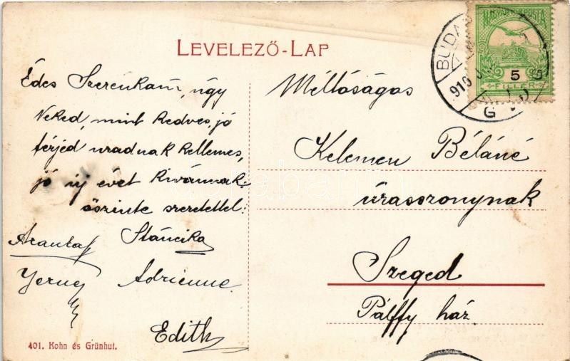 1910 Budapest XII. Városmajor utca, Bányász Ágoston. Kohn és Grünhut üzlete (ázott sarok / wet corner...