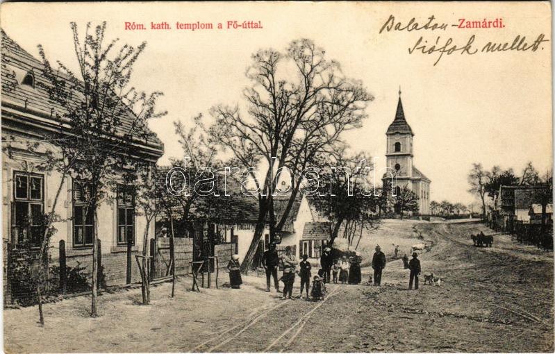 1910 Zamárdi, Balatonzamárdi; Római katolikus templom, Fő út, Magyar József vendéglője a tengerszemhez...