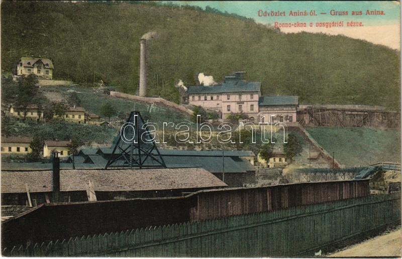1911 Anina, Stájerlakanina, Stájerlak, Steierdorf; Ronna akna a vasgyártól nézve. Hollschütz / mine, iron works, factory (EK)