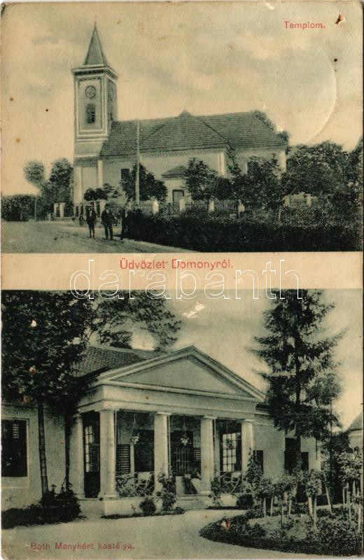 1911 Domony, templom, Both Menyhért kastélya (kis lyukak / small pinholes)