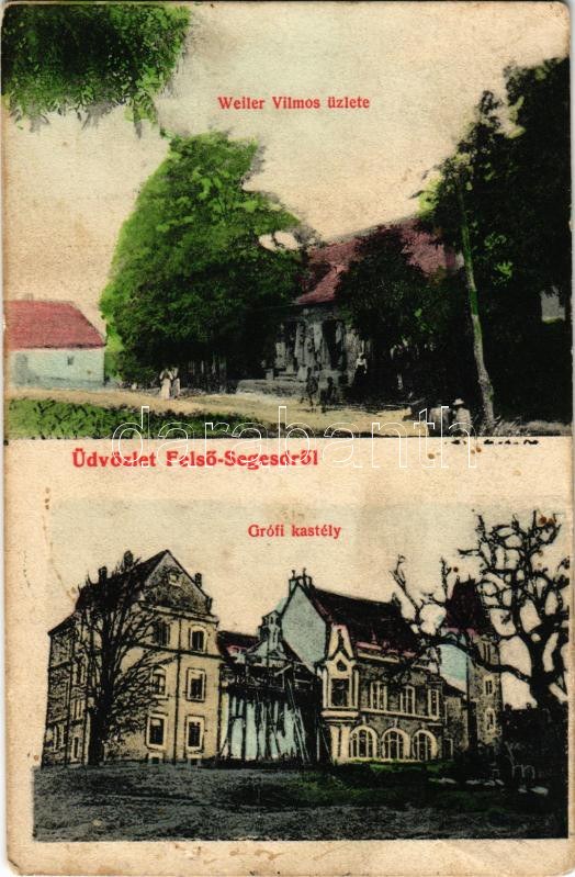 1911 Felsősegesd (Segesd), Weiler Vilmos üzlete, Gróf Széchenyi kastély (fl)