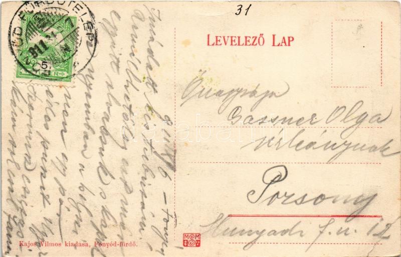 1911 Fonyód, Bélatelepi fürdőház, sínek. Kajos Vilmos kiadása (EB)