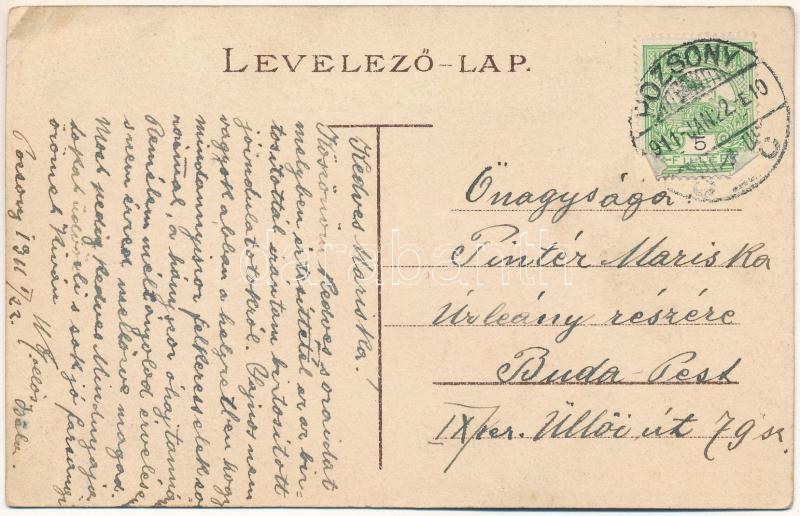 1911 Pozsony, Pressburg, Bratislava; látkép madártávlatból, zsinagóga / general view with synagogue (ázott sarok ...