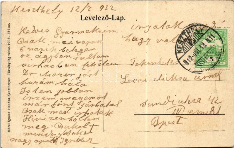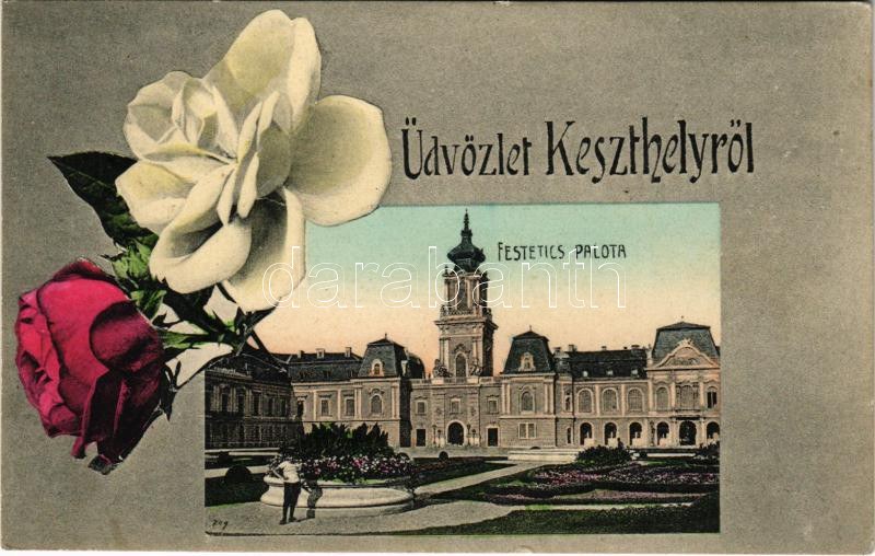 1912 Keszthely, Festetics palota. Szecessziós montázs virágokkal, Art Nouveau, Mérei Ignác 1908. 581. (EK)