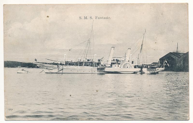 1912 SMS Fantasie osztrák-magyar haditengerészet kerekes gőzhajója, "admirálishajó" / K.u.K...