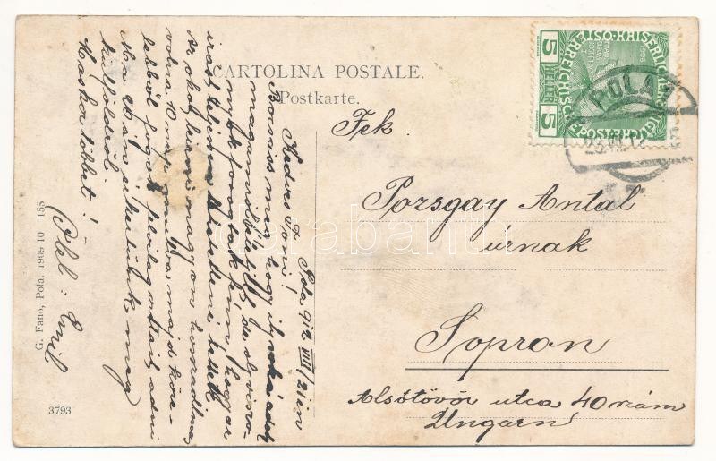 1912 SMS Fantasie osztrák-magyar haditengerészet kerekes gőzhajója, "admirálishajó" / K.u.K. Kriegsmarine Raddampfyacht (Admiralsyacht). G. Fano, POla 1909-10. 155.