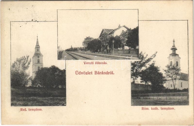 1913 Báránd, Református és római katolikus templom, vasútállomás