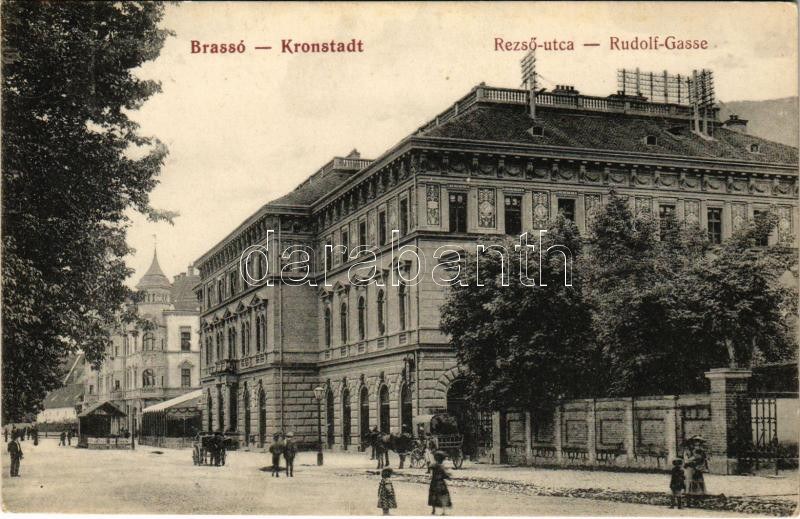 1913 Brassó, Kronstadt, Brasov; Rezső utca, Transilvania étterem és kávéház / Rudolfs-Gasse / street...