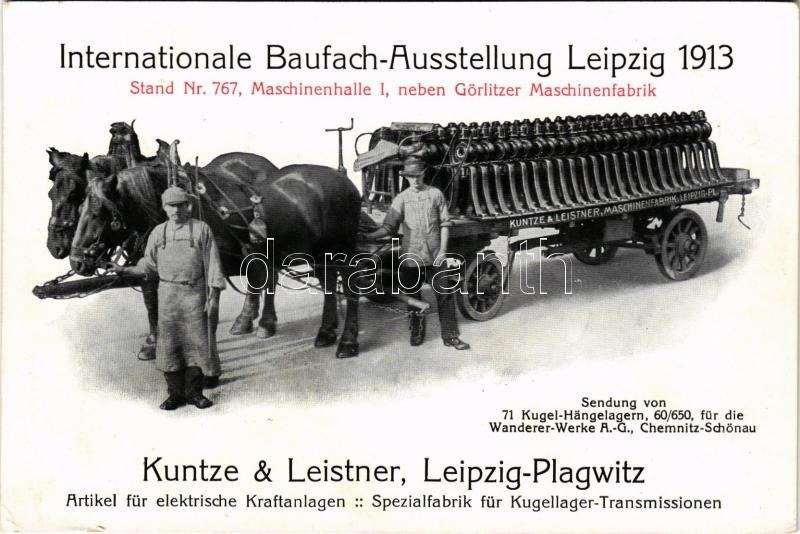 1913 Leipzig, Internationale Baufach-Ausstellung Stand Nr. 767. Kuntze & Leistner, elektrische Kraftanlagen ...