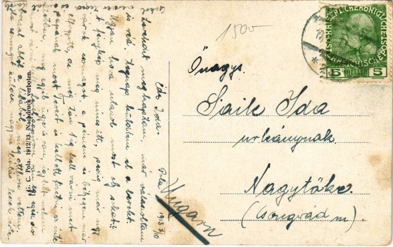 1913 Pola, K.u.K. Kriegsmarine Schiffe in Reserve / Navi in Riserva / Osztrák-Magyar Haditengerészet csatahajói Polában a tartalék kikötőben / WWI Austro-Hungarian Navy battleships in the reserve dock near the Pula shipyard. G.C. Pola 1912/13. (fl)