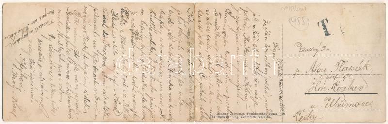 1913 Tuzla, 2-tiled folding panoramacard with synagogue (small tear at fold)