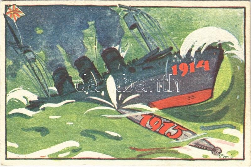 1914-1915 Első világháborús haditengerészeti propaganda lap. Magyar Földrajzi Intézet Rt. kiadása / K.u.K. Kriegsmarine / WWI Austro-Hungarian Navy propaganda art postcard s: Biró