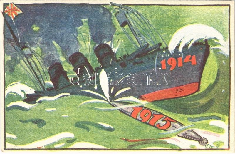 1914-1915 Első világháborús haditengerészeti propaganda lap. Magyar Földrajzi Intézet Rt. kiadása / K.u.K. Kriegsmarine / WWI Austro-Hungarian Navy propaganda art postcard s: Biró
