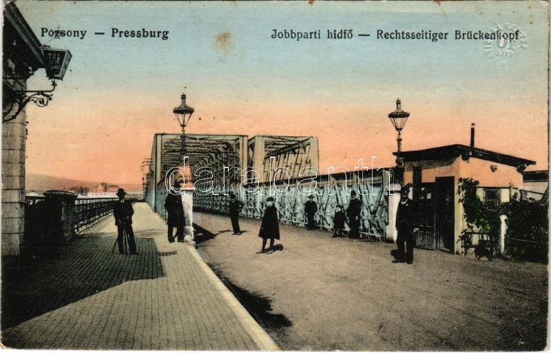 1914 Pozsony, Pressburg, Bratislava; Jobbparti hídfő, tűzjelző állomás. Vasúti Levelezőlapárusítás 5784. ...