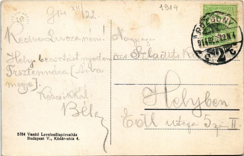 1914 Pozsony, Pressburg, Bratislava; Jobbparti hídfő, tűzjelző állomás. Vasúti Levelezőlapárusítás 5784. / Rechtsseitiger Brückenkopf / bridge, fire alarm station (fl)