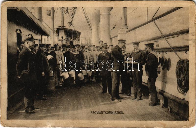 1914 Proviantkommission. K.u.K. Kriegsmarine / WWI Austro-Hungarian Navy officers tasting lunch. Phot. A. Beer, F.W...