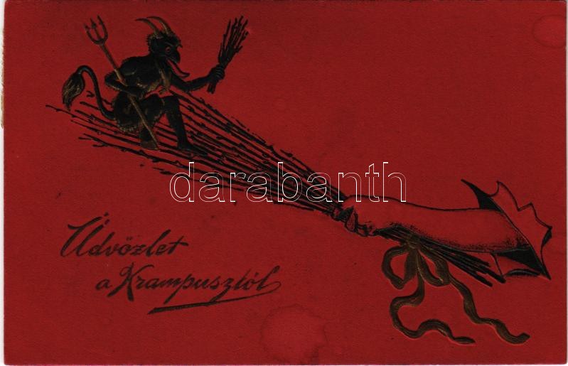 1914 Üdvözlet a Krampusztól! / Greetings from the Krampus with birch. Emb. litho (fl)