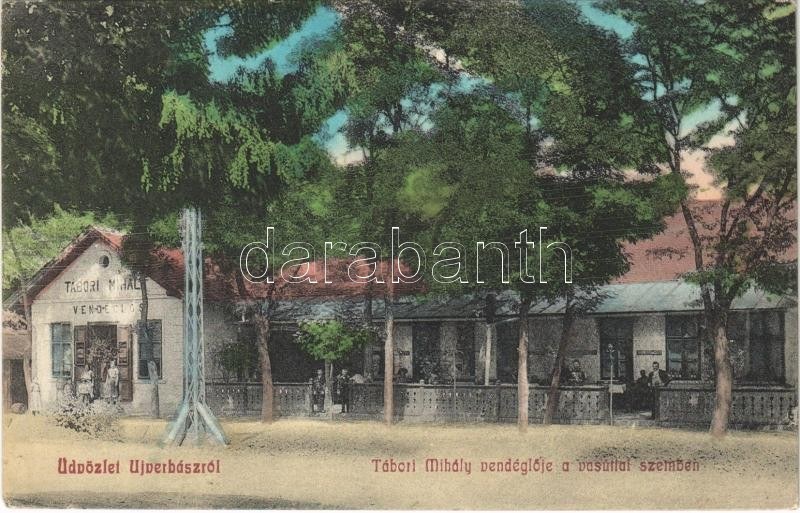 1914 Újverbász, Novi Vrbas (Verbász, Vrbas); Tábori Mihály vendéglője a vasúttal szemben / railway restaurant, inn (EK...