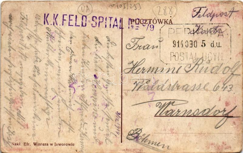 1914 Yavoriv, Javoriv, Jaworiw, Jaworów; Szkola Zabawkarska / school + "K. k. Feld-Spital No. 8/9" (fl)