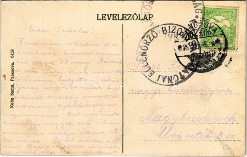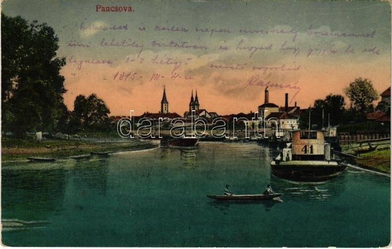1915 Pancsova, Pancevo; kikötő uszályokkal. Kohn Samu kiadása / port with barges (EK)