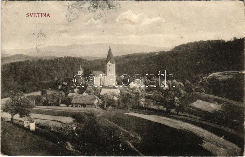 1915 Svetina; general view, church + "K.u.k. Militärzensur Cilli" (fl)