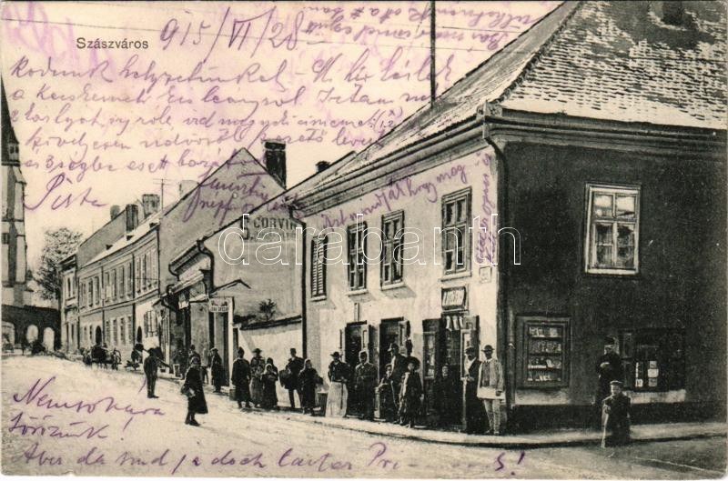 1915 Szászváros, Broos, Orastie; utca, B. Stelescu üzlete. Adler fényirda / street view, shops (gyűrődés / crease...