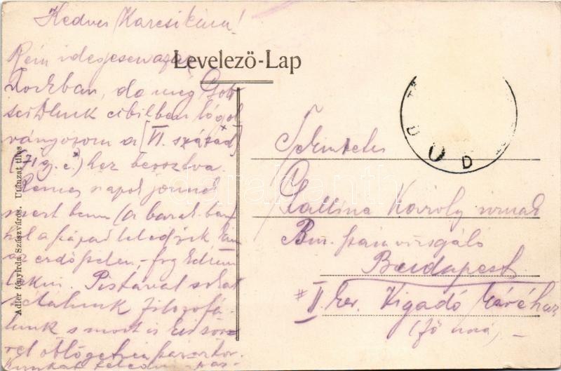 1915 Szászváros, Broos, Orastie; utca, B. Stelescu üzlete. Adler fényirda / street view, shops (gyűrődés / crease)
