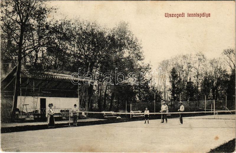 1915 Szeged, Újszegedi teniszpálya, teniszezők. Grünwald Herman kiadása (Rb)