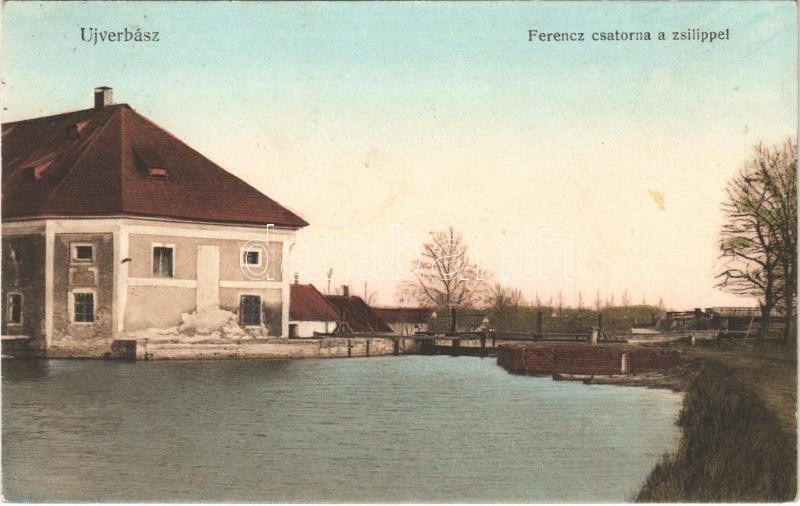 1915 Újverbász, Novi Vrbas (Verbász, Vrbas); Ferenc csatorna a zsilippel. Seidl Nándor és Fia kiadása / canal, dam (fl)