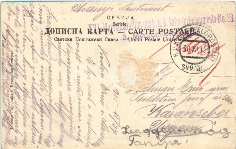 1915 Velika Lomnica, Krouchevatz-Lomnitza (Krusevac); La source de l'eau / mineral water spring + "K.U.K. HAUPTFELDPOSTAMT 300/III" (Rb)