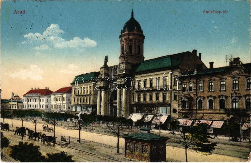 1916 Arad, Andrássy tér. Kerpel Izsó kiadása / square + portóbélyeg (EK)