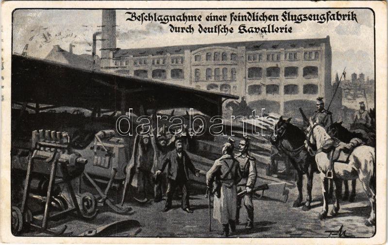 1916 Beschlagnahme einer feindlichen Flugzeugfabrik durch deutsche Kavallerie. Deutscher Luftflotten-Verein / German military aircrafts (fl)