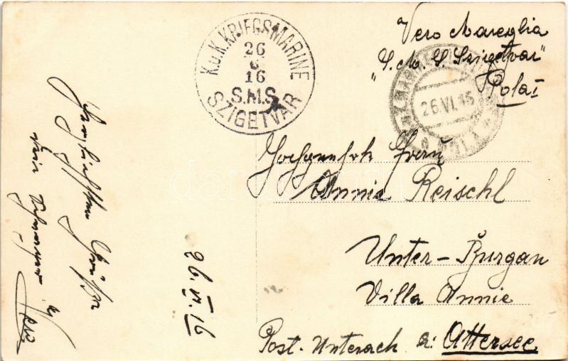 1916 Pola, Pula; K.u.K. Kriegsmarine Marine-Kasino / Osztrák-magyar haditengerészeti kaszinó / Austro- Hungarian Navy, mariners' casino + "K.U.K. KRIEGSMARINE SMS SZIGETVÁR" (EK)