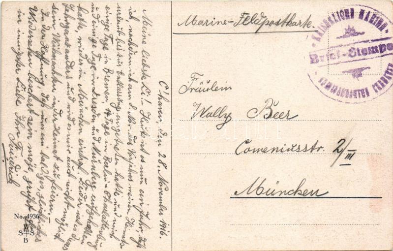 1916 Steh' ich in finst'rer Mitternacht. Marine Feldpostkarte. WSSB No. 4936. / első világháborús haditengerészeti művészlap / WWI Kaiserliche Marine, military navy art postcard + So. Stpl (EK)