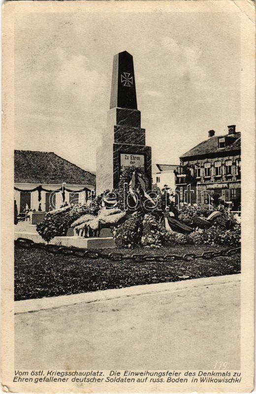 1916 Vilkaviskis, Vom östlichen Kriegsschauplatz. Die Einweihungsfeier des Denkmals zu Ehre gefallener deutscher Soldaten auf russ. Boden in Wilkowischki / WWI German military, monument + K.u.k. Feldpoststation Nr. 33" (EB)