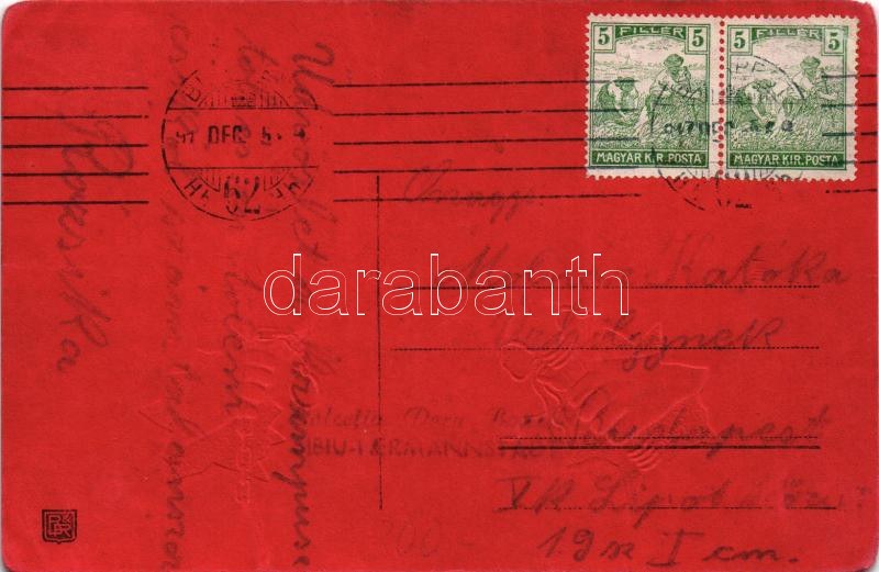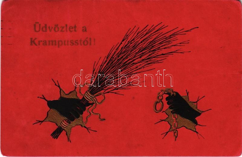 1917 Üdvözlet a Krampusstól! / Greetings from the Krampus with birch and chain. Emb. litho (kopott sarkak / worn corners)
